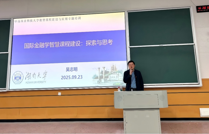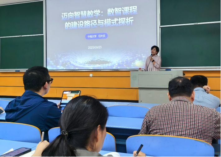 为主动顺应人工智能、大数据等技术驱动的数智化发展浪潮,扎实推进智慧教育建设,助力教师打造高水平智慧课程,9月23日下午,我校在树木楼003教室举办“数智课程建设与应用”专题培训。培训特邀中南大学任叶庆教授与湖南大学吴志明教授作专题报告,由本科生院负责人王文磊主持。