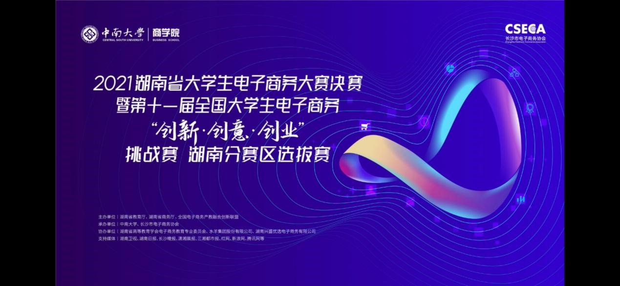 (文/商学院 姜微)2021年6月19日,由湖南省教育厅和商务厅联合主办的2021年湖南省大学生电子商务大赛在中南大学商学院隆重举行,来自省内43所高校1980个团队参加了角逐。我校商学院学生共获得一等奖2项、二等奖2项、三等奖4项。