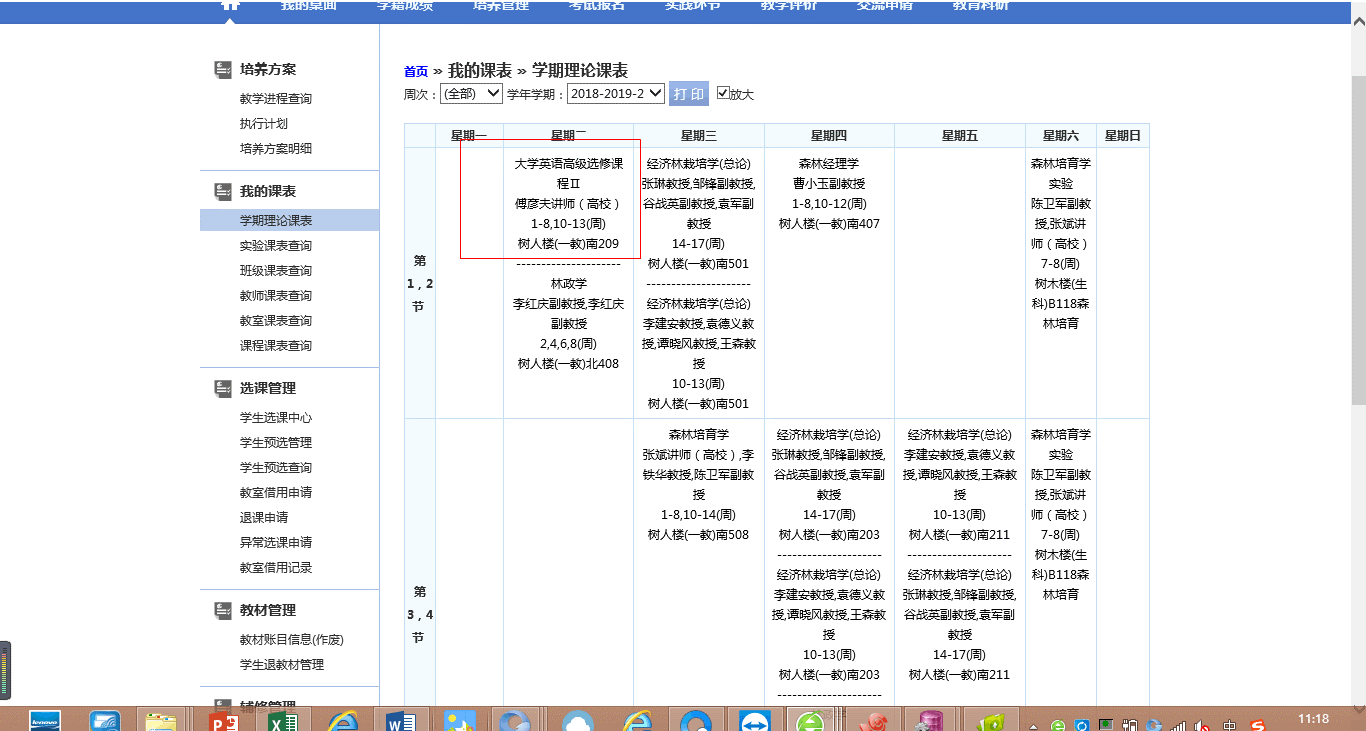 2.参照下图检查自己个人课表是否显示有已报名选课的课程;