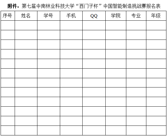 为进一步提高我校大学生创新创业实践能力,并做好“西门子杯”中国智能制造挑战赛校内选拔工作,学校决定举办中南林业科技大学“西门子杯”中国智能制造挑战赛,拟选拔优秀学生经过培训后参加国家级、省级赛事。现将相关事项通知如下: